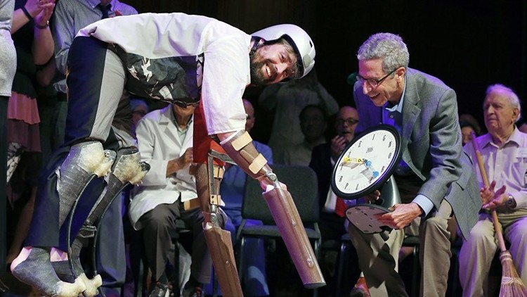 عاش الرجل الماعز “توماس ثوايتس” ثلاثة أيام بجبال الألب مع الماعز مصمما أطرافا صناعية ليمشي على أربع مثلهم ويدرس نمط حياتهم، مما أهله للفوز بجائزة نوبل للحماقة.
