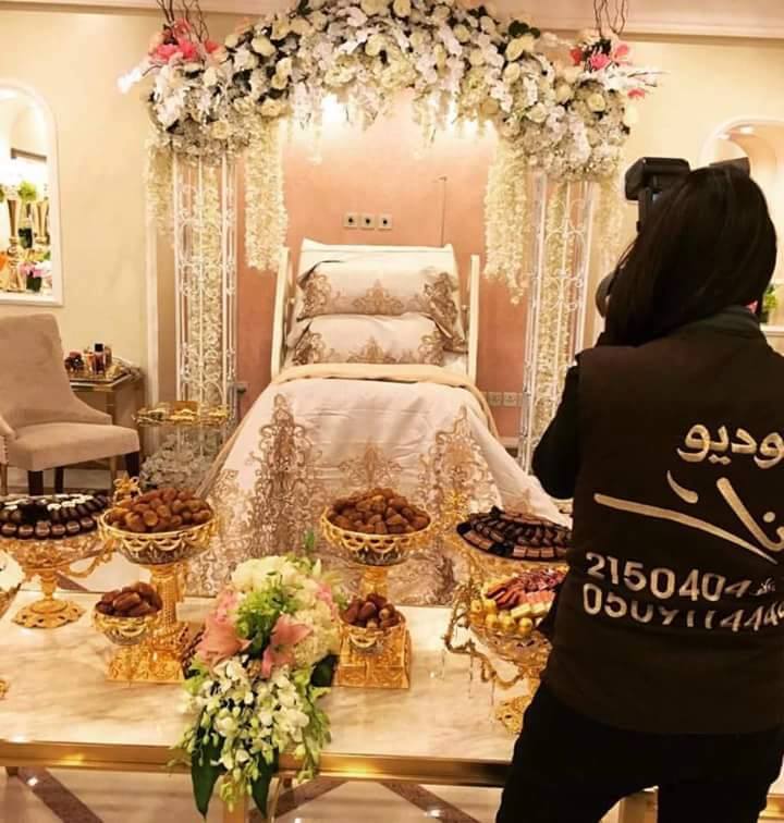 وظهرت الصور مكتوب عليها ” مبروك ماجبتي غدير الراجحي”، حيث كانت الغرفة مزينة بالكامل بباقات الورود وبها العديد من أطباق الشيكولاتة والحلويات المرصعة بالذهب، وتم تغلفة الشيكولاتة بالنقود.