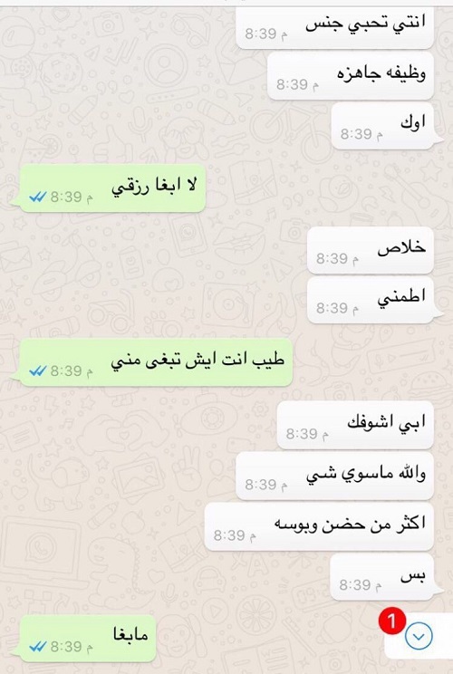 ونشر أحد المغردين صور المحادثة بين الفتاة السعودية والمقيم السوري، التي حاول فيها أن يساومها، ولكن رفضت الفتاة كل محاولاته مشددة على أنها بحاجة للعمل لإعالة عائلتها.