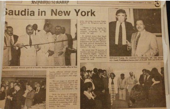 وكان الحفل شهد حضور الملياردير ترامب إلى جانب الأستاذ إبراهيم الدغيثر نائب مدير عام الخطوط السعودية آنذاك و الأستاذ عبدالحميد الجحدلي.