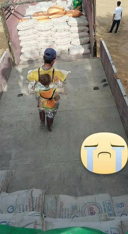 جذب أب، يعيش في مقاطعة لانج سن شمال شرق فيتنام، انتباه العالم بعد نشر صور له على الإنترنت يظهر فيها، وهو يحمل طفله على ظهره بينما يحمل أكياسا ثقيلة من الأسمنت كل يوم.
