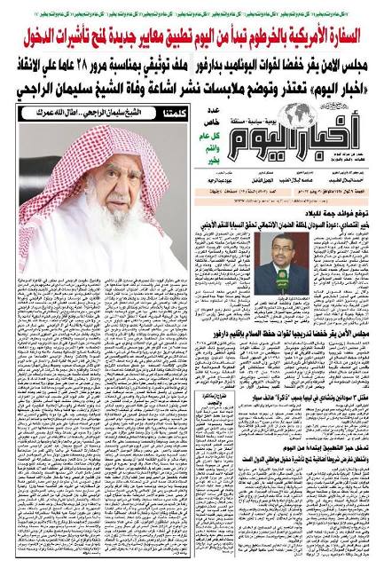 صحيفة اخبار اليوم السودانية: تعتذر عن نشر اشاعة وفاة الشيخ سليمان الراجحي
