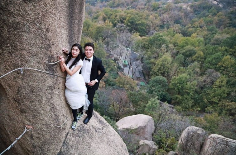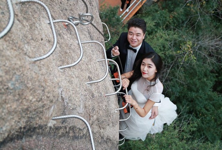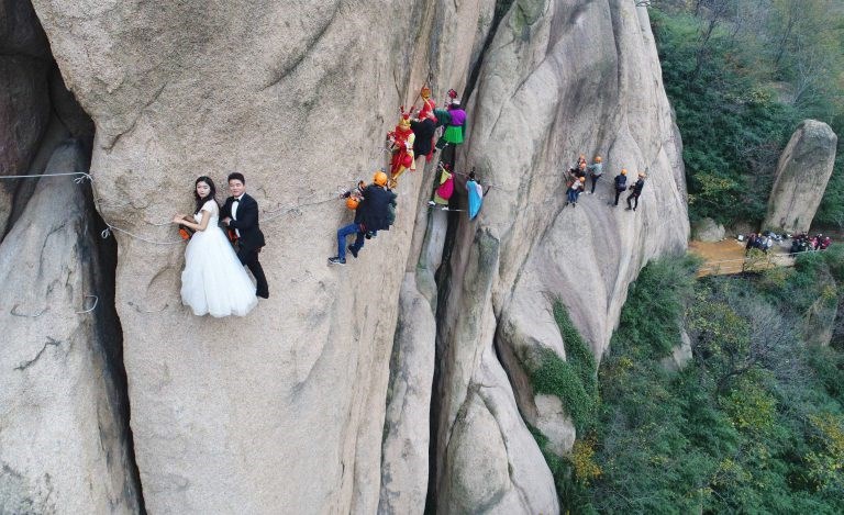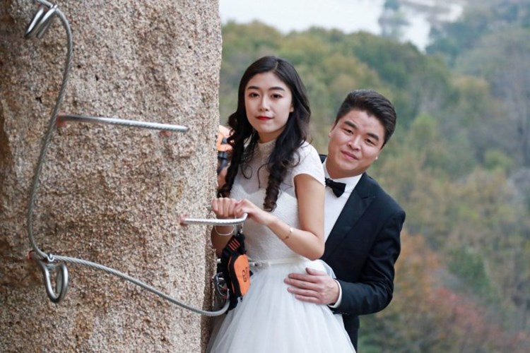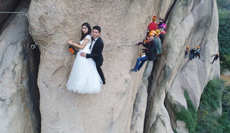 وقد أثبت العروسان المذكوران حبهما لبعضهما وللمغامرة، حيث أتمّا بعض مراسم الزفاف على جانب منحدر جبلي في #الصين، مجبرين المدعوين على خوض نفس المغامرة.