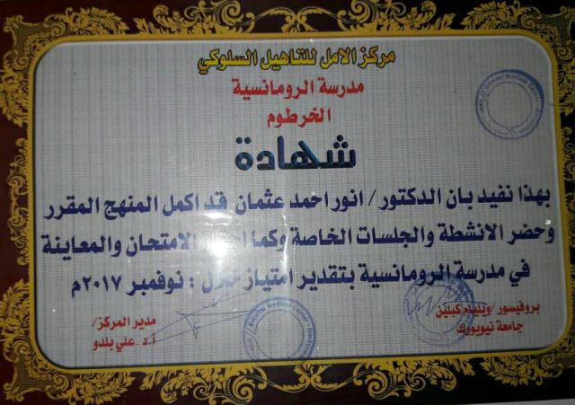 وسبق أن قال عالم الفلك الدكتور أنور أحمد عثمان بحسب رصد ريم منصور محررة النيلين ، يوم الخميس 9 نوفمبر 2017 أنه تم قبوله كأول طالب في مدرسة تعلم الرومانسية، ليحصل على الشهادة في 17 يوماً .