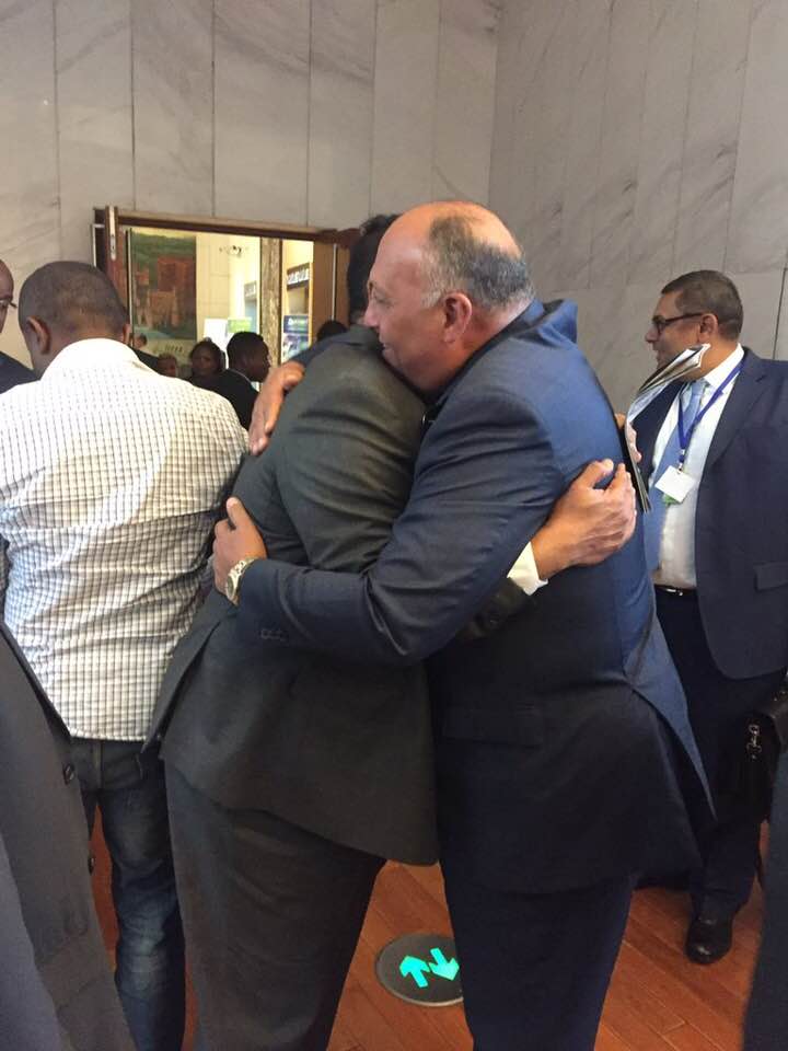 وعند إلتقاء الوزيرين بأديس ابابا يوم الخميس 25 يناير الجاري إلتقطت عدسات المصورين لحظة العناق بين غندور وشكري، ووجدت الصور تفاعلاً واسعاً بحسب رصد محرر النيلين على صفحات التواصل الإجتماعي.