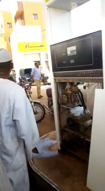 مقطع فيديو لماكينة بنزين في إحدى الطلمبات بالخرطوم تتعرض لسخانة وذلك بسبب إرتفاع درجة الحرارة وكثرة الضغط عليها مما أدى إلى تعطلها.