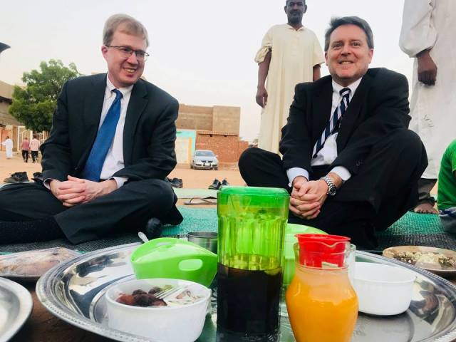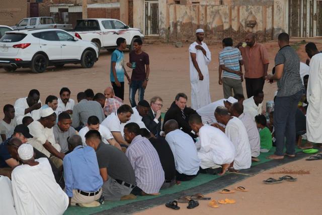 لبي المستشار السياسي والاقتصادي في سفارة الولايات المتحدة الأمريكية السيد بين والاس دعوة لتناول افطار رمضاني من أسرة سودانية جنوب الخرطوم في منطقة الكلاكلة القلعة.