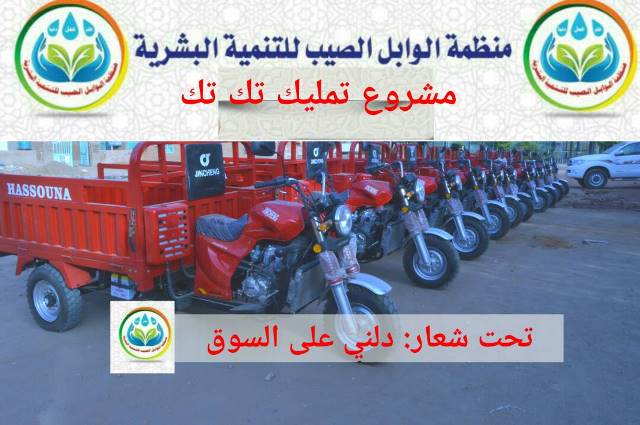 امتدح أحمد محمد عثمان المفوض العام للعون الإنساني بالإنابة إسهامات منظمة الوابل الصيِّب في المجالات الدعوية والتعليمية والإغاثية ، وقال لدى مخاطبته احتفال المنظمة بتسليم (10) تكتك للدعاة والعلماء والمعلمين أمس بمقر المنظمة بجبرة ، تحت شعار (بارك الله لك في أهلك ومالك ؛ دلني على السوق) ، قال إن المنظمة تعمل وفق خطة الدولة الرامية لتمليك المحتاجين وسائل الإنتاج بدلاً عن تقديم الدعم والمعونات ، مشيراً لأهمية تحول ثقافة العطاء المادي إلى تمليك وسائل الإنتاج لتصبح الأسر منتجة وليست مستهلكة .