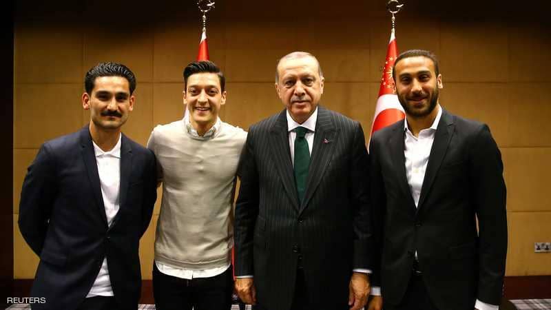 واتهم في بيان (رئيس الاتحاد الألماني) غريندل بممارسة العنصرية ضده، كاسرا صمتا التزم به منذ أثارت صورة جمعته وزميله في المنتخب الألماني التركي الأصل أيضا إيلكاي غوندوغان بالرئيس أردوغان في مايو، مما أثار أسئلة حول ولائه لألمانيا قبل نهائيات كأس العالم في روسيا 2018.