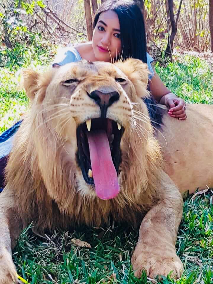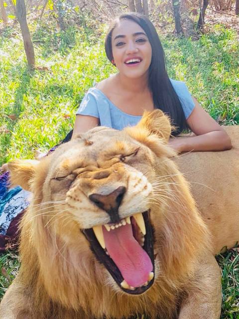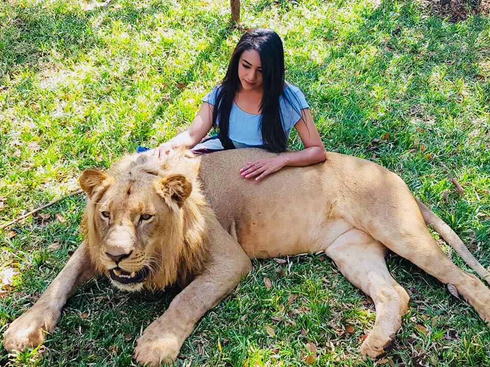 الاعلامية “رفيدة ياسين” تروض أسد وتدهش جمهور فيسبوك بصور مغامرة خطيرة