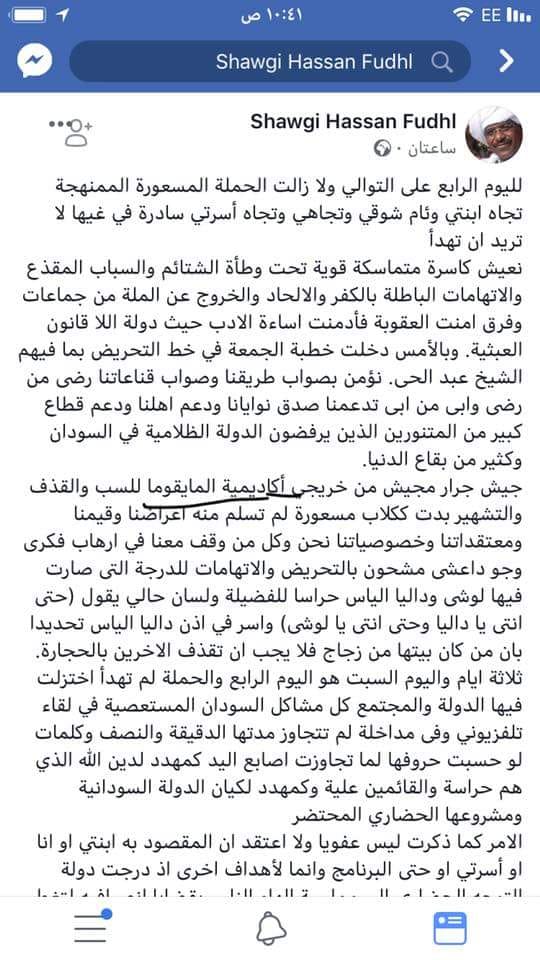 صورة من منشور شوقي حسن الذي هاجم فيه داليا الياس ولوشي واخرين