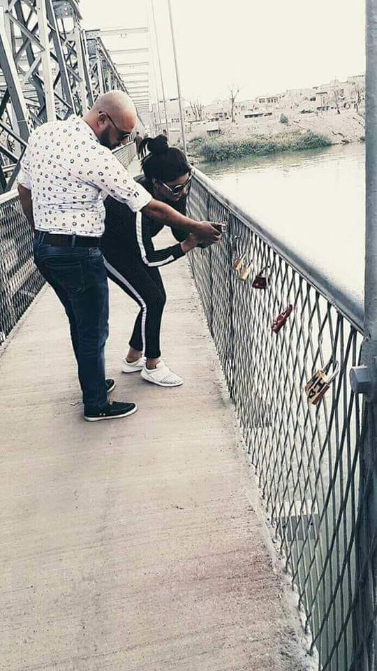 وبينت الصور التي رصدها محرر موقع النيلين شاب وفتاة وهما يقومان بتعليق “أقفال” على سياج الجسر تعبيراً عن الحب عن طريق نحن اسمائهم “الأقفال”.