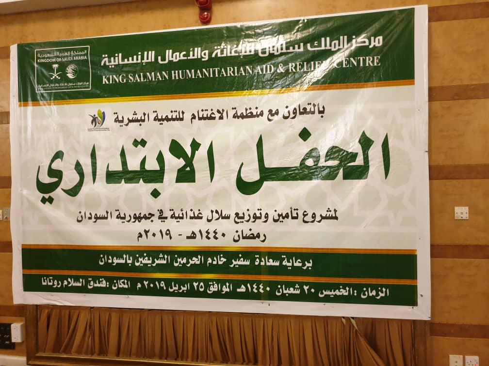 دشنت سفارة خادم الحرمين الشريفين ومركز الملك سلمان للإغاثة والأعمال الإنسانية بالتعاون مع منظمة الاغتنام للتنمية البشرية اليوم بفندق السلام روتانا، مكرمة شهر رمضان العظيم إنفاذا لتوجيهات خادم الحرمين الشريفين الملك سلمان بن عب دالعزيز بتقديم حزمة من المساعدات الإنسانية للشعب السوداني بمختلف فئاته.