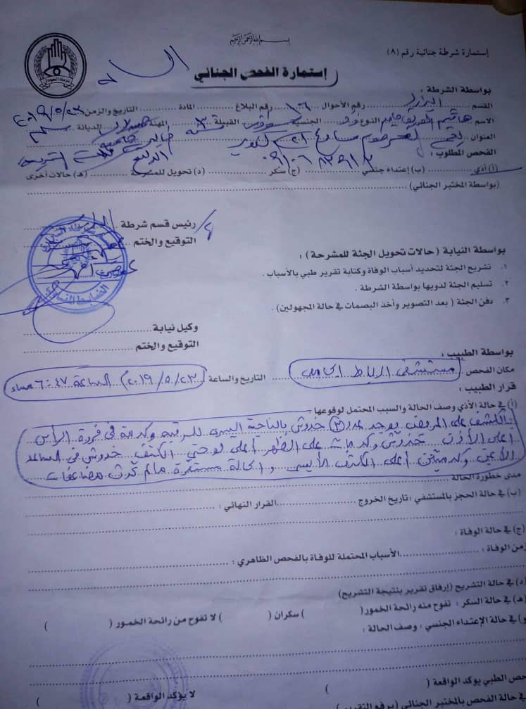 وقاموا بإطلاق سراحي الساعة السادسة والنصف صباحاً. يعني مكث معهم منذ بعد مغرب الأربعاء إلى بعد شروق الشمس من يوم الخميس 23/5/2019م.