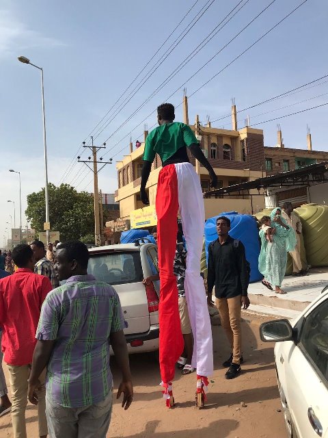 وكان ابرزهم الشاب الذي ظهر بشارع الستين بالخرطوم وهو يمشي على ساقين اصطناعيين وقد بدأ طويل القامة بشكل لافت متوشحاً علم السودان.