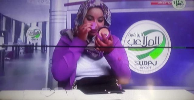 نتشر مقطع فيديو على مواقع التواصل الاجتماعي وخصوصاً موقعي فيس بوك ويوتيوب , المقطع يوضح مذيعة قناة الملاعب الرياضية وهي تقوم بوضع المكياج أثناء بث الاستديو التحليلي لمباراة المنتخب السوداني والمنتخب التشادي ضمن تصفيات كاس العالم قطر 2022 .