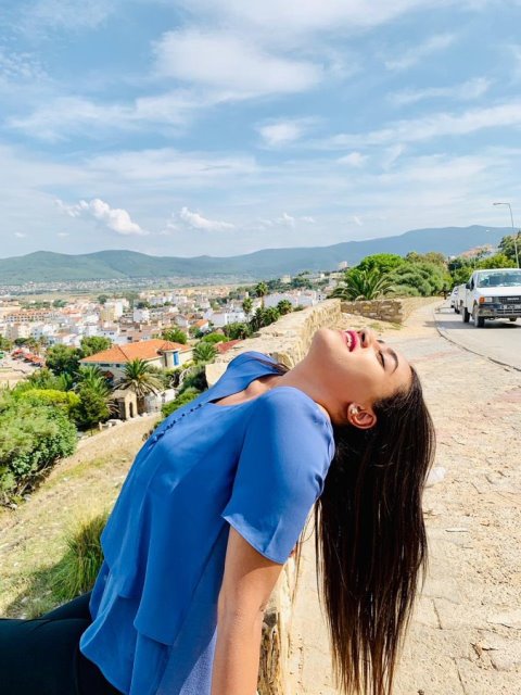وظهرت “رفيدة” وهي تطل من شرفة على المدينة الفاتنة وقد تدلى شعرها إلى الوراء سعيدة بالمشهد، وغردت قائلة: من #طبرقة عاصمة المرجان وعروس الشمال #تونس#.