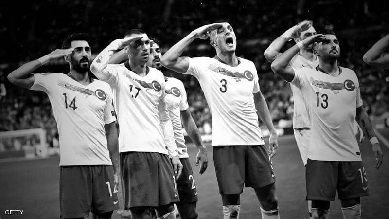 وتمثل التحية العسكرية التي أداها لاعبو المنتخب التركي بعد مباريات المنتخب مع نظيره الألباني والفرنسي ضمن تصفيات بطولة الأمم الأوروبية “يورو 2020 ” الأسبوع الماضي، انتهاكا للقواعد التي تحظر أي بيانات أو تعبيرات سياسية في الملاعب.