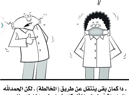 منعوا (الخلط) والكورونا حاتجينا (بالمخالطة) 2020/04/08 صحيفة آخر لحظة مقالات ذات صلة ناس البند السادس كورونا السودان الأرض تحاول الخروج من ألغام كورونا الدولار في أيدي (الجلابة) .. و الفكة في أيدي (الشحادين) ..! انهم يسرقون الكمامات..! كورونا يصطاد الخارجين من المنزل.. حظرونا سبب الكورونا ..! تشجيع الفيروسات المصنوعة محلياً..!