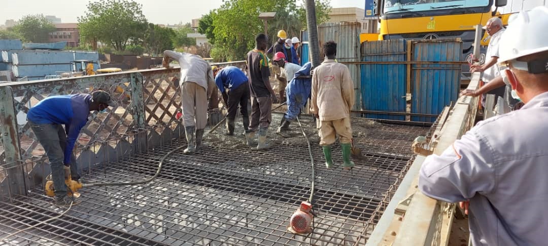 انطلاق عمليات الصب الخرصاني للمسار الغربي بجسر النيل الازرق