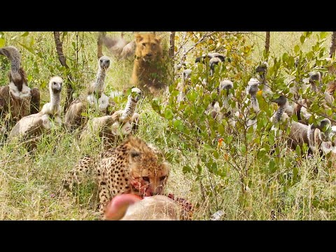 يظهر الفيديو افتراس فهد، بعد مطاردة ناجحة، ظبيا متوسط الحجم، ولكن النسور الجارحة هاجمته واستولت على فريسته بينما فر هاربا منها.