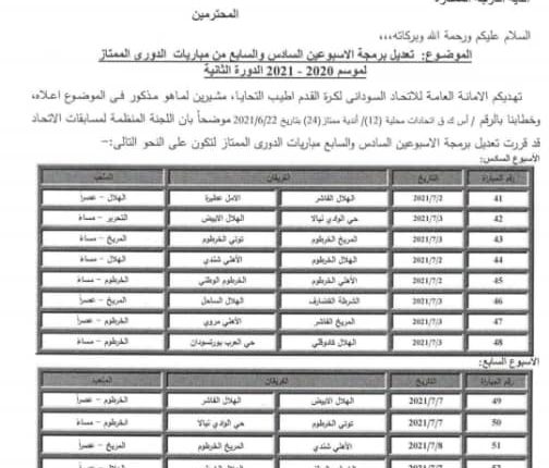 أعلن اتحاد كرة القدم السوداني عن تعديلٍ جديدٍ في مباريات الدوري السوداني الممتاز، الأثنين.