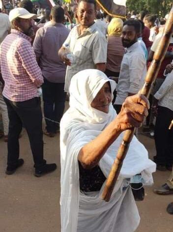 خطفت مُسِنة سودانية الأضواء في تظاهرات، داعمة للحكم المدني، انطلقت اليوم الخميس بالخرطوم، ولاقت صورة العجوز وهي تلوح بعصاتها انتشارا واسعاً على منصات التواصل الاجتماعي.