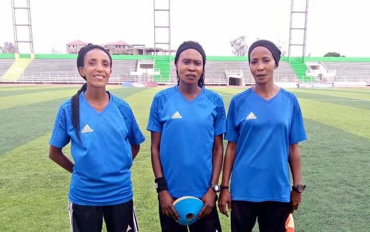 طاقم تحكيم نسائي سوداني لمباراة يوغندا وإثيوبيا