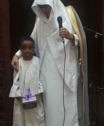 قصة تعود للعام 2014.. بالصورة: إمام مسجد بالسعودية يكرّم طفل سوداني لأمانته بتسليم مبلغ مالي كبير