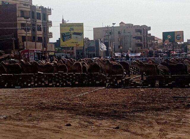 * الصورة أعلاه من إعتصام سراج بعد أن ترك القحاتة التروس فقام تجار المواشي بإستغلال مساحتها كزرائب للخرفان