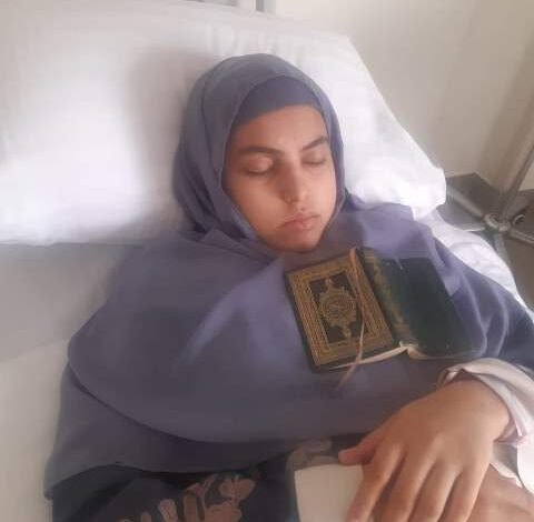 وأضاف: اقسم يا ابنتي الحسناء كم يشق علي أن يصبح فجر العيد ولا أراك يا عاشقة المصحف، وعزائي أني أحسب أنك في مقعد صدق عند مليك مقتدر، اللهم اغفر لها وارحمها وثبتني.