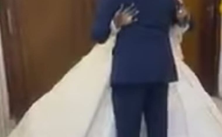 وبحسب رصد ومتابعة محررة موقع النيلين فقد أظهر المقطع المتداول عريس يدخل على عروسته في (الكوافير) تأهباً للانتقال لمسرح الحفل.