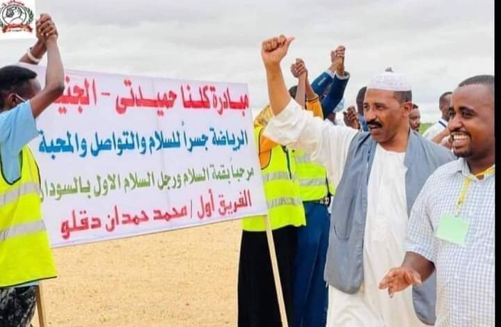 وظهر ود البطانة (يبشر) امام لافتة كتب عليها مبادرة كلنا حميدتي، الأمر الذي أثار حفيظة المعارضين لقائد الدعم السريع.