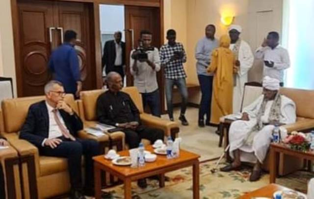 بعد أن أوصت مبادرة نداء أهل السودان بإنهاء أجل البعثة الأممية فولكر يزور الشيخ الطيب الجد في قاعة الصداقة. عزمي عبد الرازق