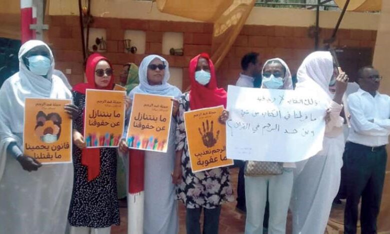 أطلقت تيارات سياسية ومنظمات نسوية في الخرطوم، الأربعاء، حملة لمناهضة عقوبة «الرجم»، ونفذت وقفة احتجاجية أمام مقر المفوضية السامية لحقوق الإنسان في الخرطوم، مطالبة بإلغائها، باعتبارها نوعاً من التعذيب والعنف ضد المرأة.
