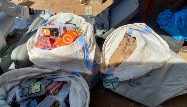وشملت البضائع المضبوطة صابون غسيل ومواد غذائية و موبايلات بأنواع مختلفة.