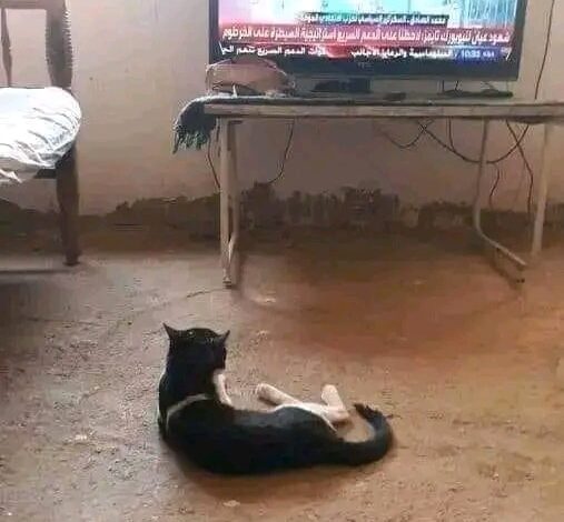 وبحسب رصد ومتابعة محرر موقع النيلين فقد قام الناشط الساخر بتصوير قطته وهي تجلس أمام التلفاز داخل منزله وتشاهد من على البعد الأخبار.