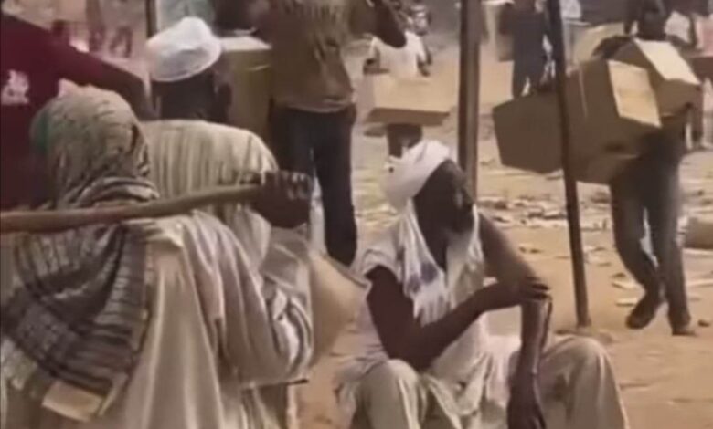 شاهد بالصورة والفيديو.. رجل سوداني يخطف قلوب المتابعين بعد ظهوره وهو يتوضأ وسط سوق ليبيا والناس من حوله ينهبون ويسرقون المحلات التجارية