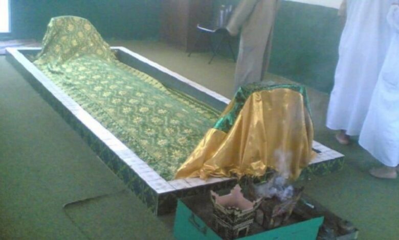 وأظهرت الصورة المتداولة ما يبدو أنه قبر مغطى بقماش أخضر.