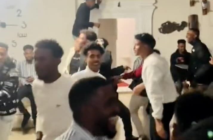 وبحسب ما شاهد محرر موقع النيلين فقد أظهر المقطع الشباب وهم يرقصون بشكل هستيري على أنغام الموسيقى السودانية الصاخبة.