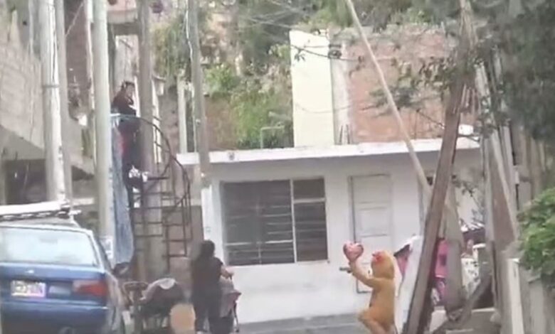شاهد بالفيديو : ضابط بزي دب “عاشق” يستدرج تاجرة مخدرات بلافتة “أنت سبب ابتسامتي”