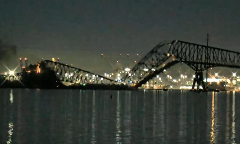 شاهد بالفيديو .. انهيار أجزاء من جسر في بالتيمور الأمريكية بعد اصطدام سفينة به