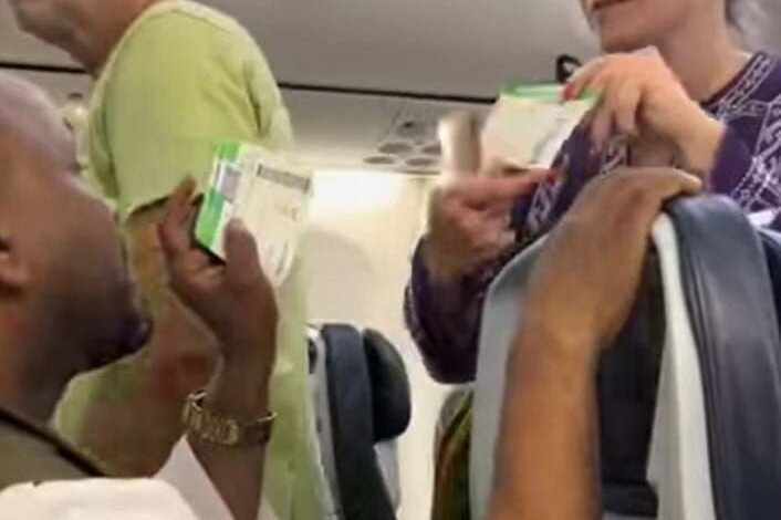 الفيديو الذي تم تصويره من داخل طائرة الخطوط المصرية أظهر السوداني وهو يرفض مبارحة مقعده بالرقم “41” للخواجية.