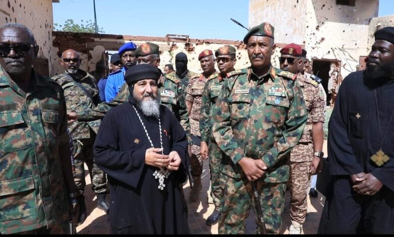 رئيس مجلس السيادة يتعهد باعادة تأهيل كنيسة الأقباط ويشيد ببطولات أفراد الاحتياطي المركزي