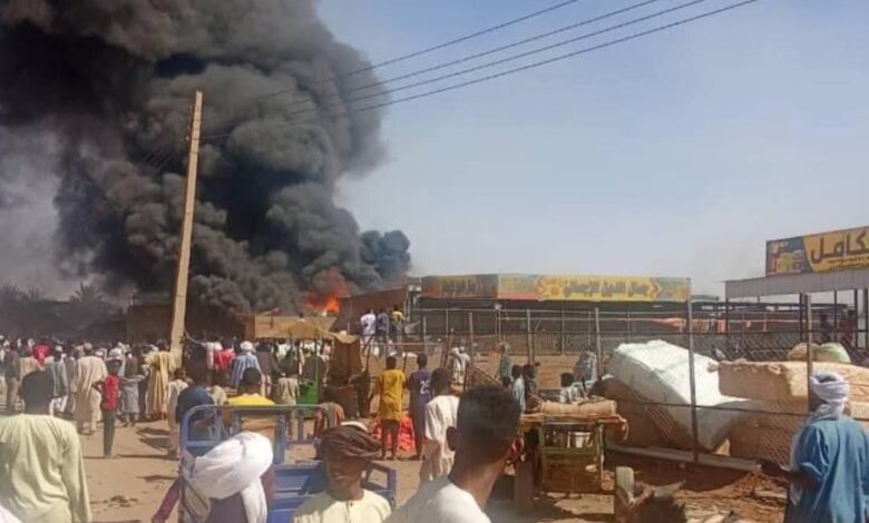 حريق ضخم بعدد من المحلات التجارية بسوق البصل بمحلية الدبة