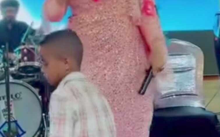 الطفل اقتحم المسرح الذي كانت تغني فيه “القلعة”, ودخل في وصلة رقص بالعرضة على طريقة “الصقرية”, الشهيرة في السودان.