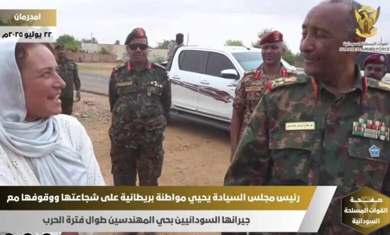 شاهد بالصورة والفيديو.. رئيس مجلس السيادة يلتقي بمواطنة بريطانية ويشيد بشجاعتها بعد أن ظلت طوال فترة الحرب مرابطة مع أبنائها بحي المهندسين بأم درمان