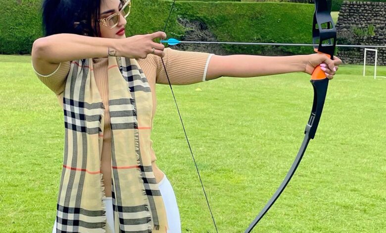 وبحسب رصد ومتابعة محرر موقع النيلين, فقد ظهرت نجمة قناة سكاي نيوز عربية, في اللقطة وهي تطلق “السهم” من “القوس” الذي تحمله.