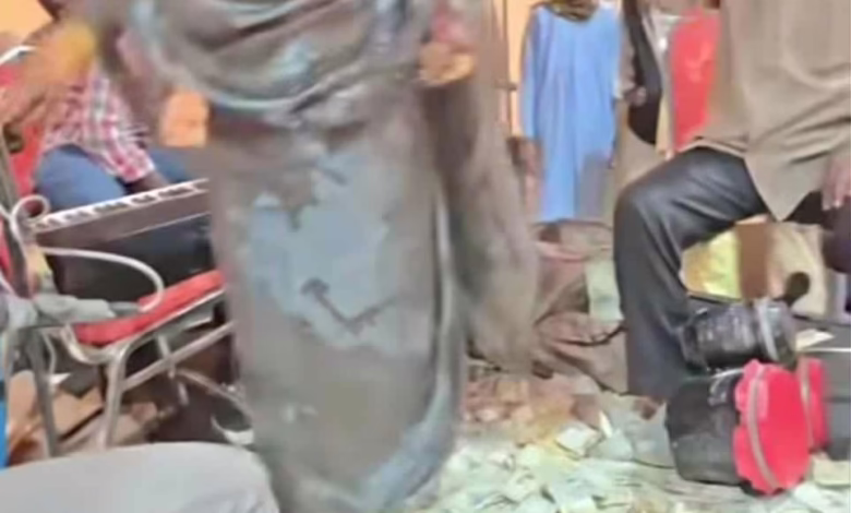 وبحسب رصد ومتابعة محرر موقع النيلين, فإن الفيديو الذي تم تصويره من حفل أحيته الفنانة المعروفة فهيمة عبد الله, بإحدى الولايات أظهر أموال طائلة على أرض المسرح الذي كانت تغني فيه الفنانة.