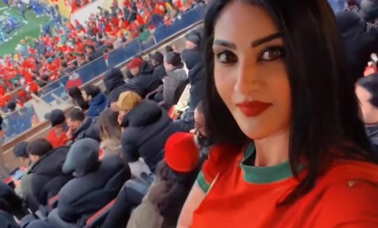 وبحسب رصد ومتابعة محرر موقع النيلين, فقد توشحت نجمة قناة سكاي نيوز عربية, بشعار المنتخب المغربي, الذي ساندته من المدرجات.